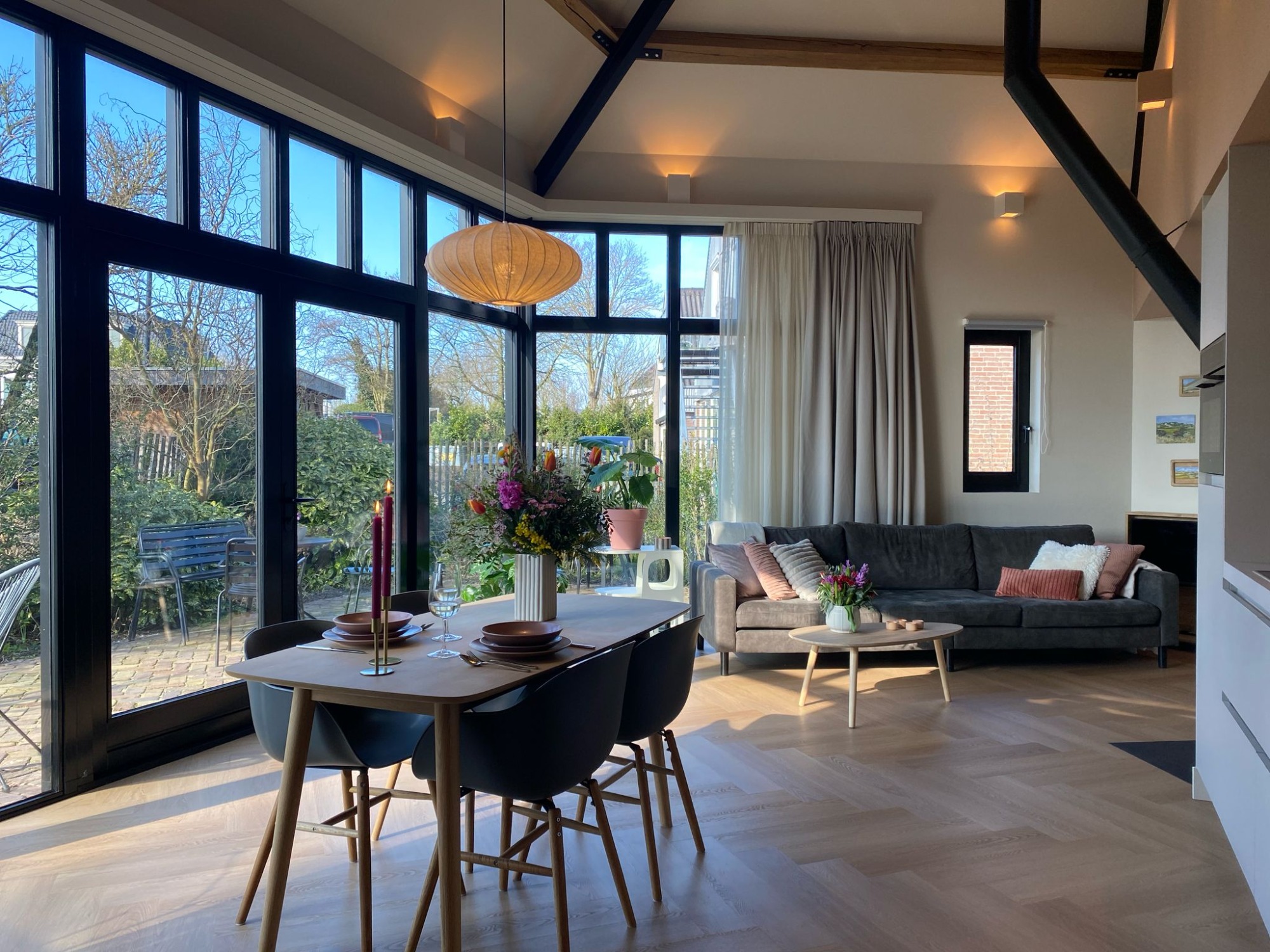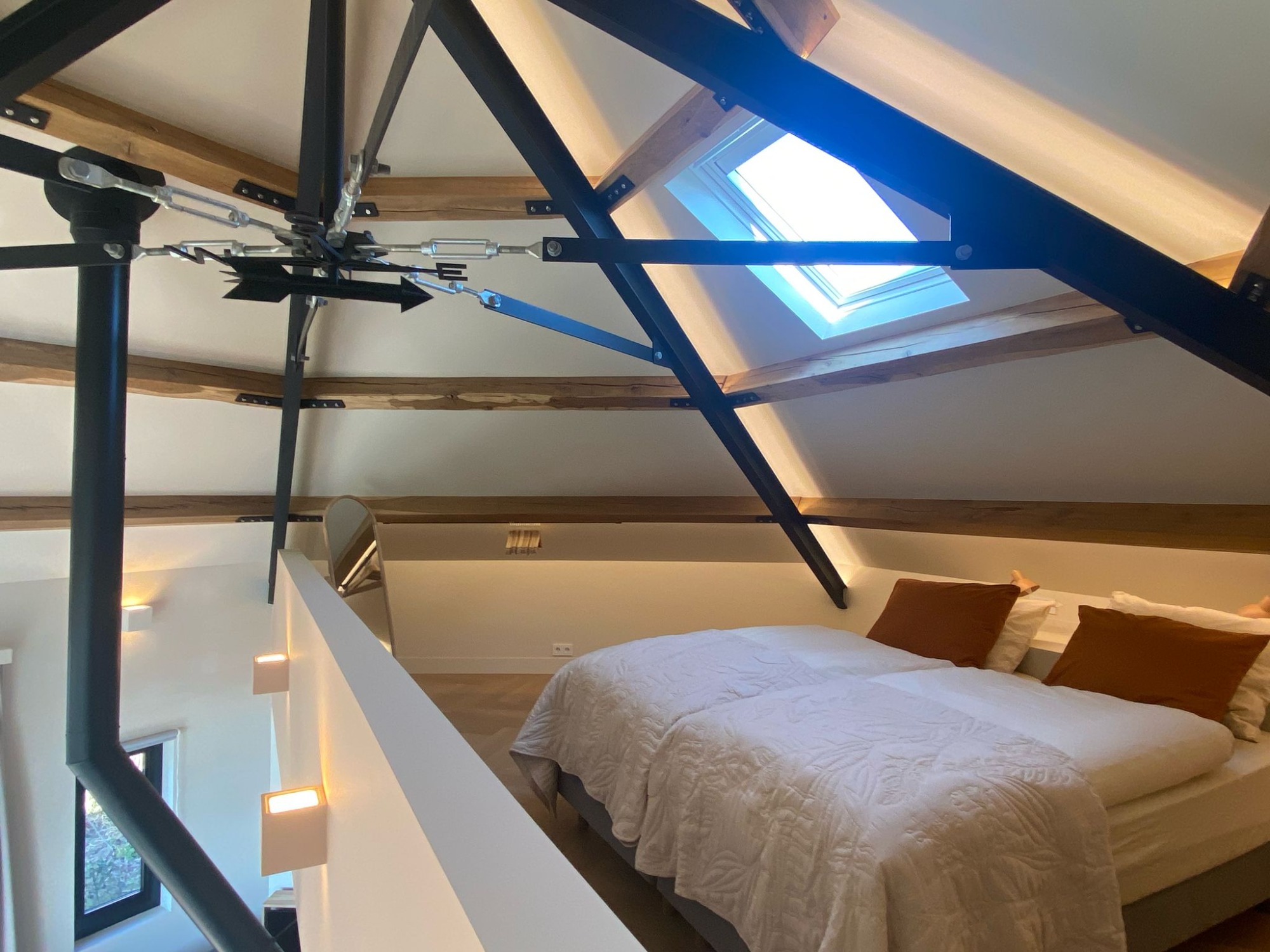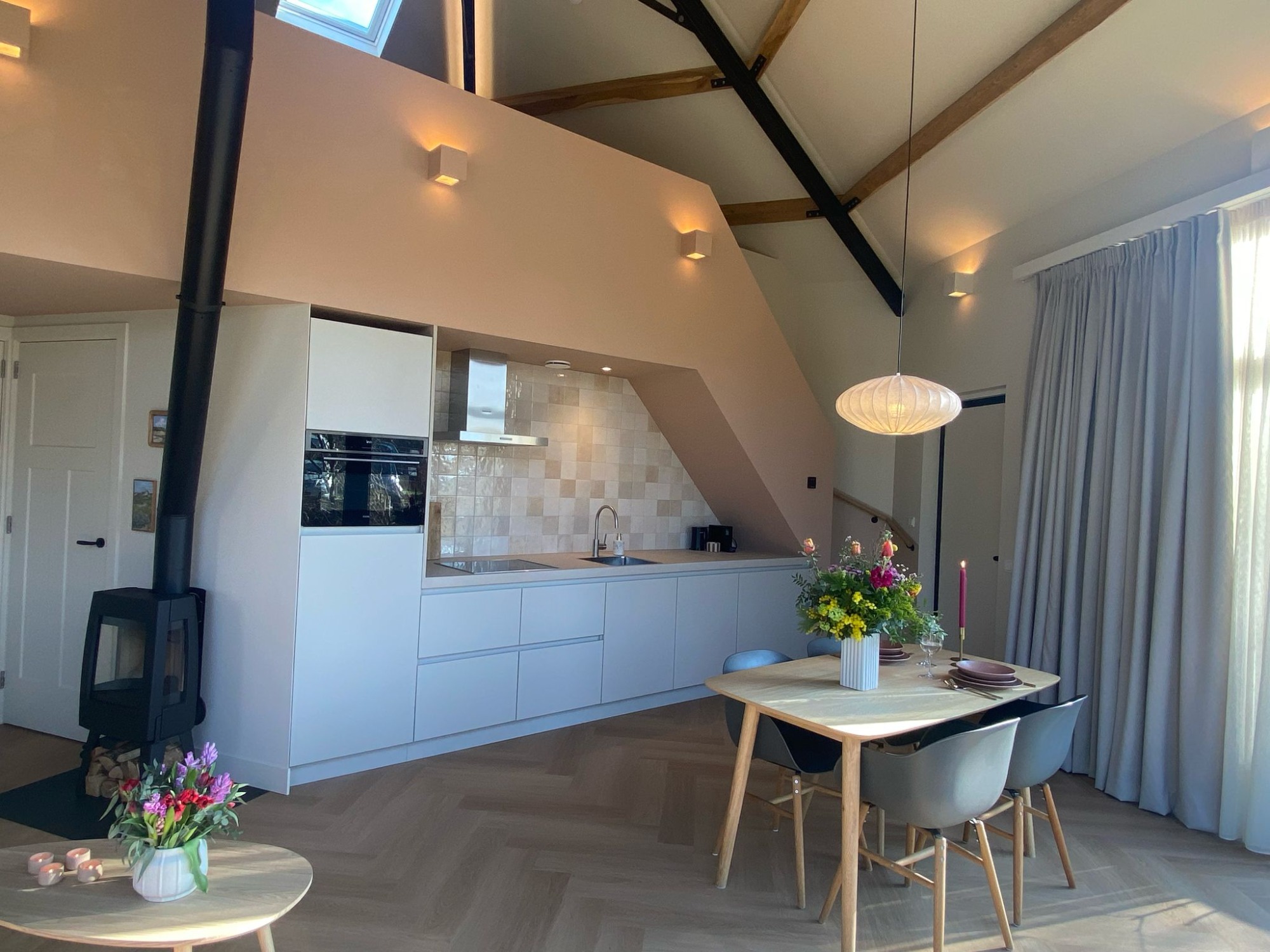 'De Hooischuur' is een stijlvol en comfortabel vakantiehuisje, perfect voor een gezellig uitje met z’n tweeën. Het is een charmant huisje dat ooit een hooischuur was. In de goed uitgeruste keuken vindt u alles wat u nodig heeft. De woonkamer met openslaande deuren naar het terras nodigt uit om lekker buiten te genieten. De sfeervolle slaapkamer op de entresol is de ideale plek om tot rust te komen. Het huisje is voorzien van vloerverwarming. En er is een haardje voor knusse avonden.
